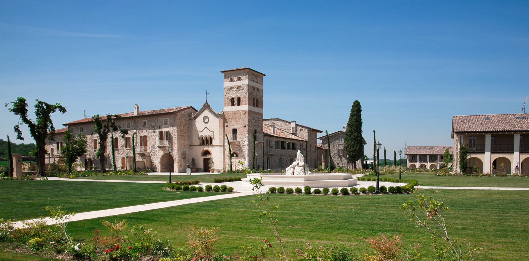 Zum Resort gehört auch das wunderschön in die alte Benediktiner-Abtei San Vigilio integrierte Hotel, mit komfortablen Unterkünften, Spa und zahlreichen Sportmöglichkeiten.