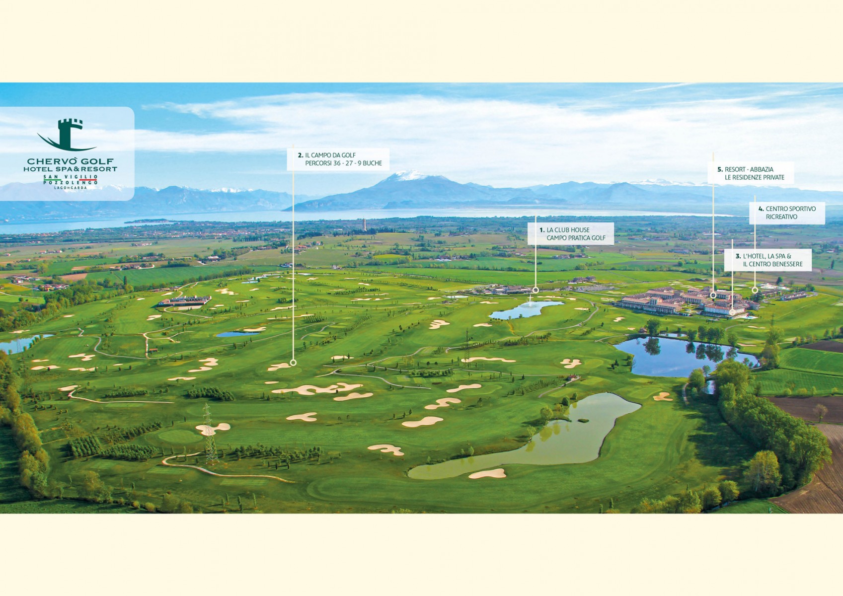 Bei traumhaften Wetter eine Runde Golf auf einem Platz an dem sich neues und altes, Geschichte und Moderne, Sport und Wellness treffen, was will das Golferherz mehr! Der 2009 eröffnete Golfplatz Chervò Golf San Vigilio liegt in Pozzo Lengo südlich vom Gardasee zwischen Sirmione und Desenzano. Die 27-Loch-Anlage mit den 3 Kursen Benaco, Solferino und San Martino und einem Kurzplatz wurde von Kurt Rossknecht entworfen und fügt sich malerisch in die geschichtsträchtige wellige Landschaft. Die Türme von San Martino und Solferino sind optisch der Höhepunkt auf einer Golfrunde, die optimale Spielbedingungen für Golfspieler aller Klassen bietet. Dank der breiten Fairways und der wenigen Ausgrenzen ist ein entspanntes Spielen möglich, insbesondere Longhitter können hier zeigen, was sie können.
