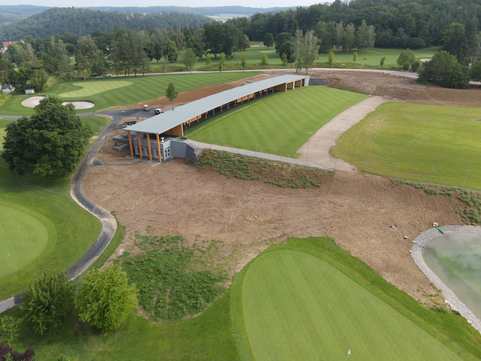 So können künftig Golfschläge aus unterschiedlichsten Lagen und Entfernungen ebenso trainiert werden wie Abschläge mit einer Länge von bis zu 300 Metern. Und das nicht nur bei gutem Wetter: Unter dem Dach des großzügigen Range-Gebäudes finden 30 Golfspieler nebeneinander Platz zum Schwingen ihrer Schläger. Hinzu kommen zwei Abschlagsplätze in den Trainerkabinen sowie einer Kabine für das Schlägerfitting. Außerdem wurde unter der Driving Range eine 170 Quadratmeter große Indoor-Trainingsanlage für das Training im Winter geschaffen. Ausgerüstet werden die Trainingseinrichtungen mit digitalen Videoanalyse-Systemen, die das Üben der Golftechnik auf ein neues und modernes Niveau heben.