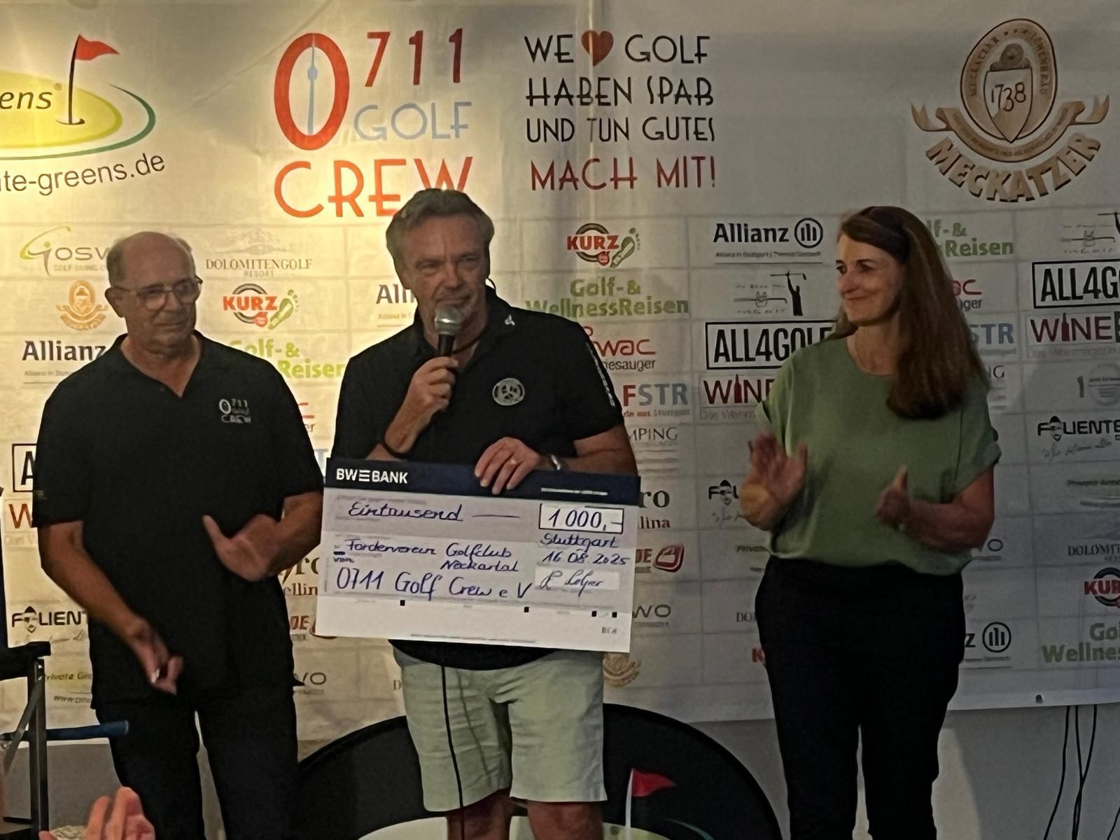Unser Überraschungsgast und Ehrenmitglied, der lieber mitgespielt hätte, freute sich nach seinem tragischen Fahrradunfall bei der Übergabe von einem Spenden Scheck für sein Sozialprojekt „Sven hilft e.V.“ in Höhe von 4.000€, der beim Messeauftritt der 0711 GOLF CREW auf der CMT 2025 generiert wurde.. Schön, dass Du da sein konntest und ein großes Lob für Dein Engagement bei uns und deinem Verein. Danke dass wir dich dabei haben, Dich ein bisschen mit der 0711 GOLF CREW unterstützen können. Wir freuen uns jetzt schon auf unsere gemeinsame Zeit bei der Messe Golf&WellnessReisen im Rahmen der CMT 2026.