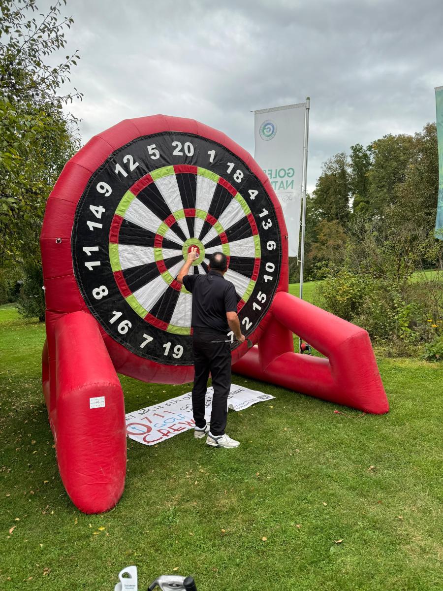 Veil Spass an der Dartscheibe der CREW, die übrigens für Enents gemietet werden kann. Foto 0711 GOLF CREW