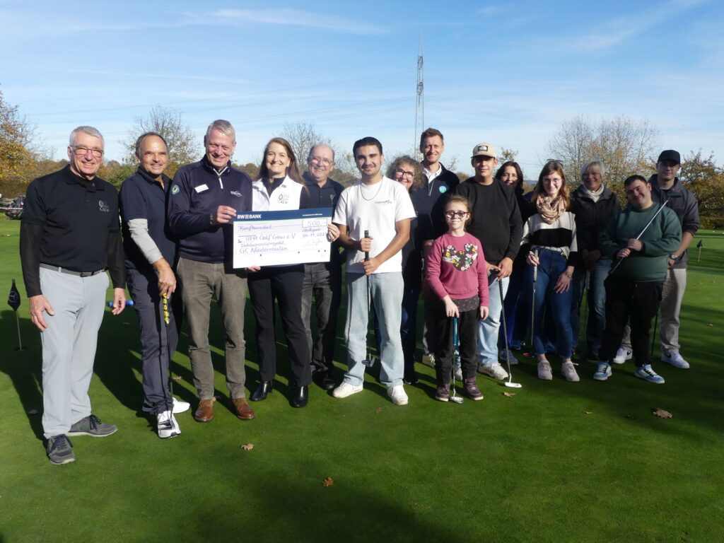 Finanziert wird das Projekt vollständig durch die 0711 GOLF CREW. Am 4. November durften wir dem GC Domäne Niederreutin vor Ort einen Spendenscheck in Höhe von 500 Euro überreichen, der die Kosten des Golftrainings im Club abdeckt. Trainer Heiko Freise ist begeistert und schafft es, seine Schnuppergolfer auf besondere Art und Weise zu motivieren. André Kette übernahm als Geschäftsführer des BWGV von Anfang an eine vermittelnde Rolle zwischen allen Beteiligten, wofür wir uns ganz besonders herzlich bedanken. Ebenso geht unser Dank an den GC Domäne Niederreutin, der ab Januar 2026 wieder Partnerclub der 0711 GOLF CREW ist.