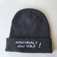 Wärmendes Beanie (Mütze) aus 100% Polyacryl in zeitlosem, todschicken Anthrazit mit erstklassig-winterlichem Logo-Stick und passendem Spruch „Arschkalt, aber Golf!“